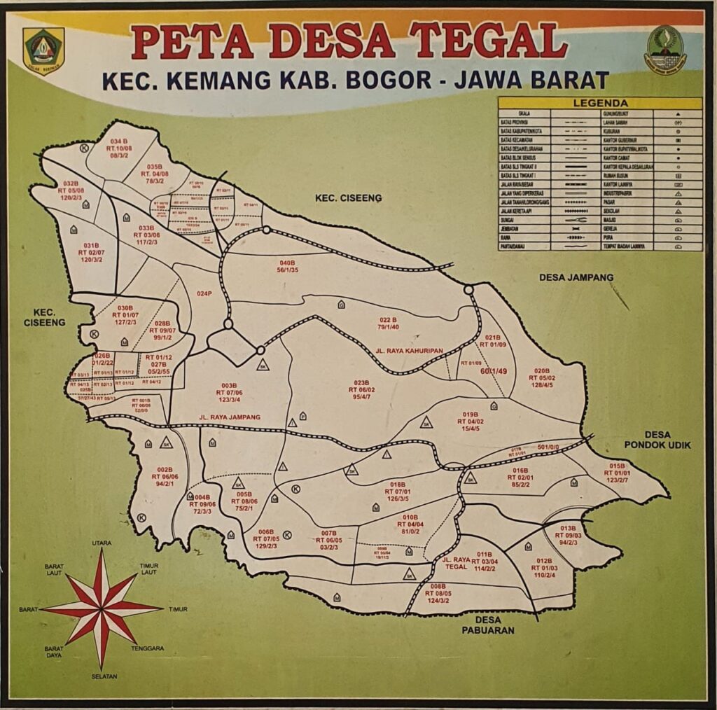 Desa Tegal Berbatasan wilayah administrative dengan Desa Pondok Udik di sebelah Selatan